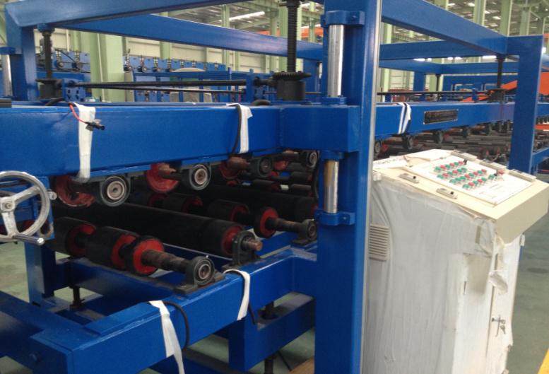 4.主機(jī)采用外包橡膠輥臥式復(fù)合,保護(hù)了彩鋼板漆面保護(hù)及夾芯板的加壓復(fù)合;